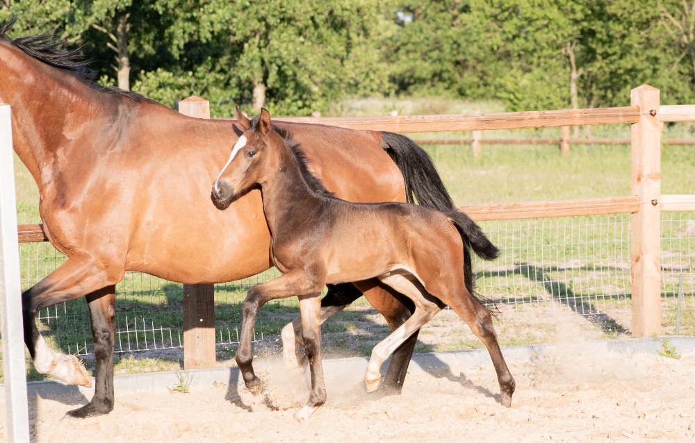 knap hoogbenig donkerbruin merrieveulen van 2025