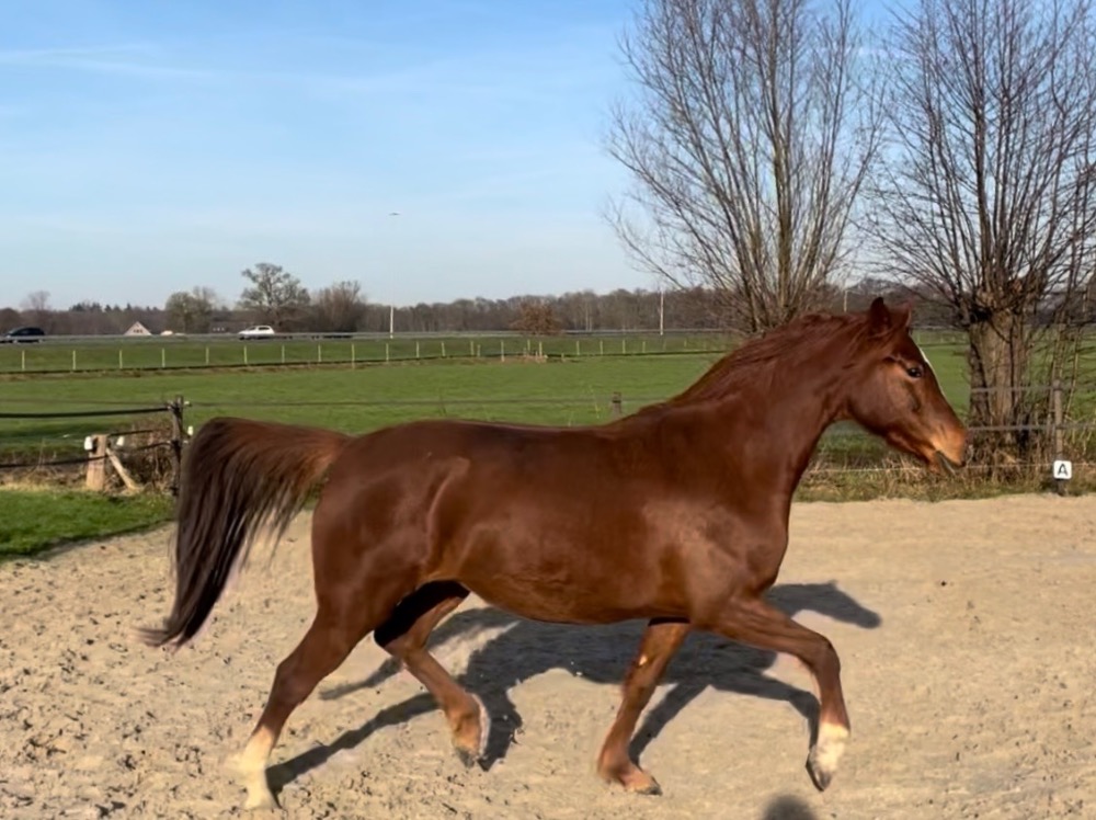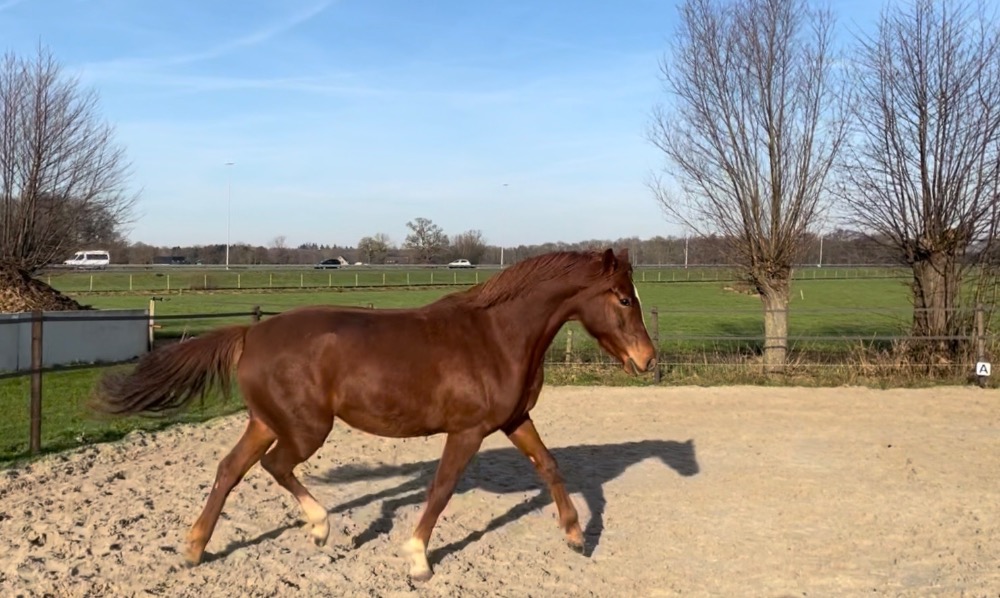 Mooie jonge merrie aangeboden, nu 3,5. Ze is nog helemaal naar eigen hand te zetten en groen. Loopt braaf mee aan een halster. Helaas ontbreekt het mij echt qua tijd om lekker met haar aan de gang te gaan, wegens jong gezin en andere paarden. Met pijn in mijn hart heb ik besloten of ik een andere plek voor haar kan vinden, waar ze wel rustig opgepakt kan gaan worden.