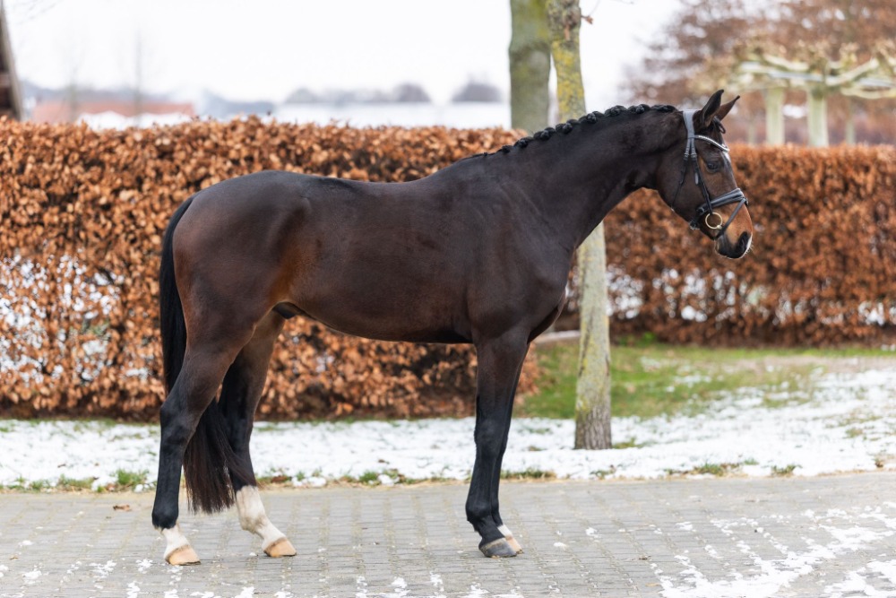 Daydream van de Beekerheide (v. DiMaggio Black x Floriscount) is een opvallende, mooi in het type staande donkerbruine ruin. Hij staat correct op zijn benen en toont veel expressie en zelfhouding. Hij is circa 3 maanden onder het zadel en wordt momenteel professioneel opgeleid. Hij laat drie hele fijne, ruime gangen zien met veel potentie voor de dressuursport. Hij is goed aan de hulpen en werkt graag en makkelijk.
